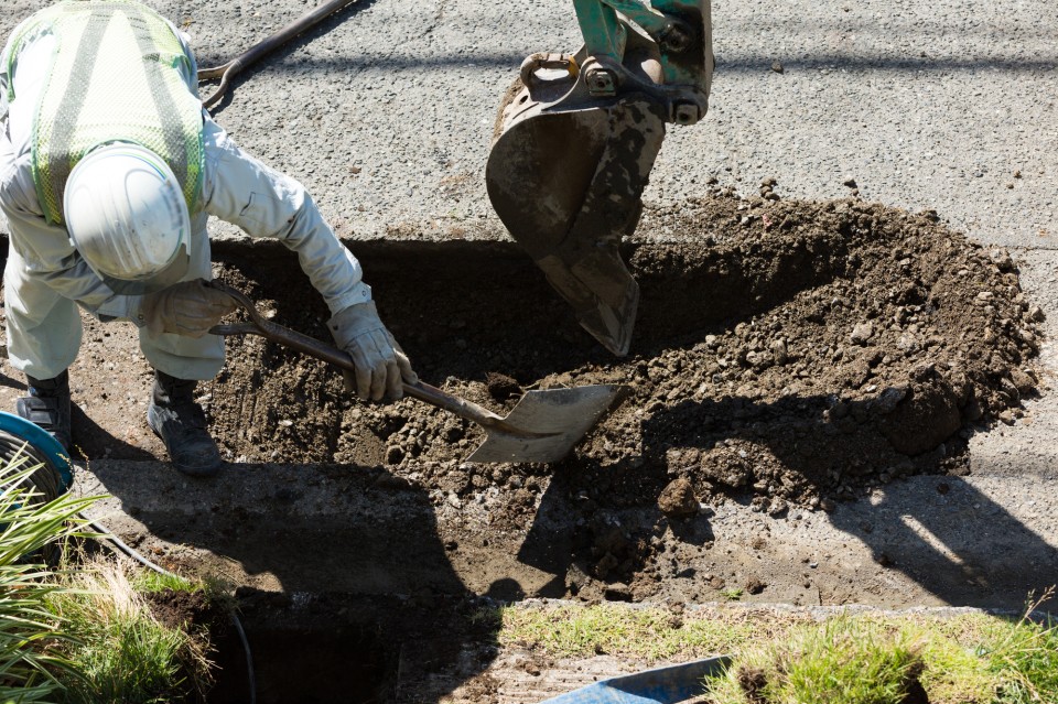 水道施設工事では、道路工事に伴い水道管の敷設や更新、給排水設備の設置を行います。安全かつ安定した水の供給を支えるため、地盤や周囲の環境に応じた施工が求められる重要な工程です。